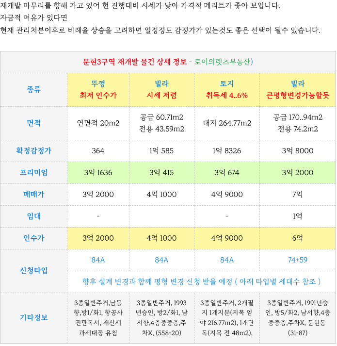 문현3구역 재개발의 인수가 작은 뚜껑 등 괜찮은 물건 소개해 드리겠습니다.