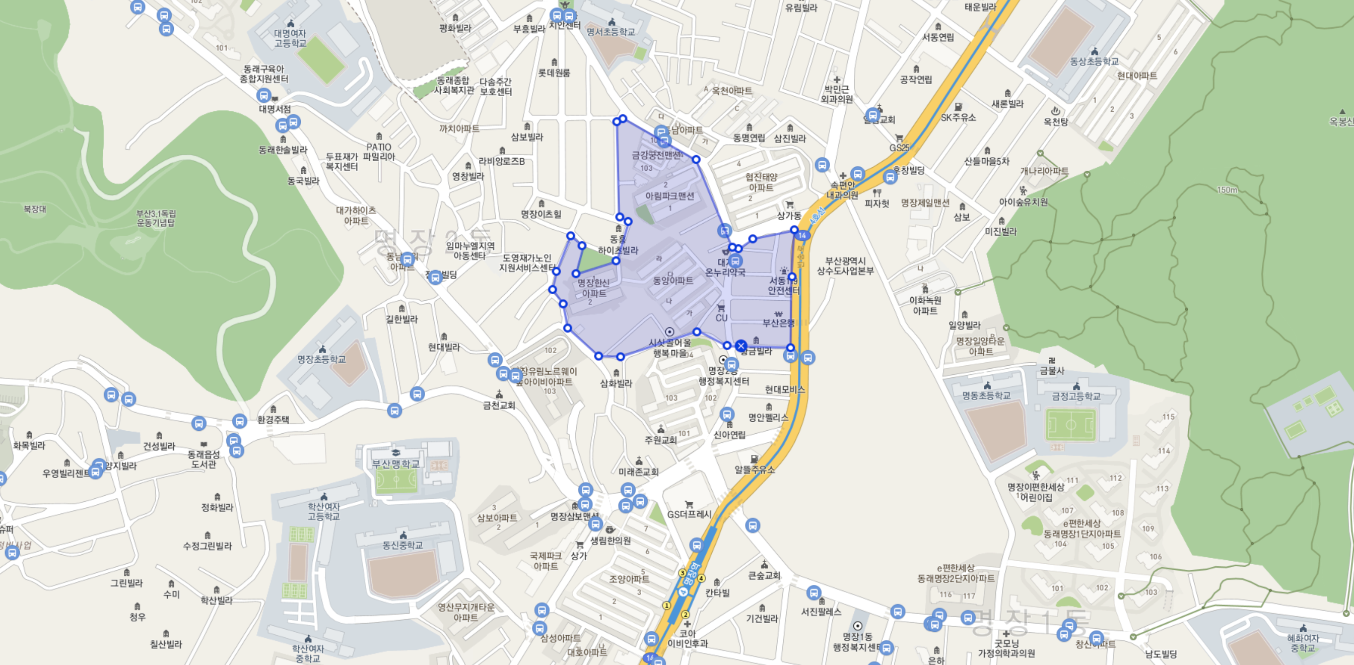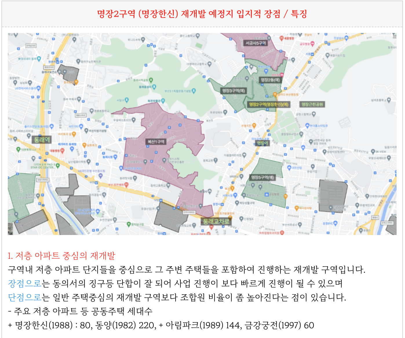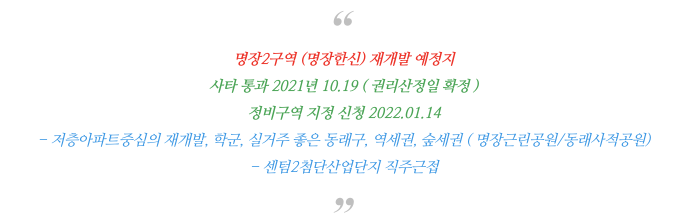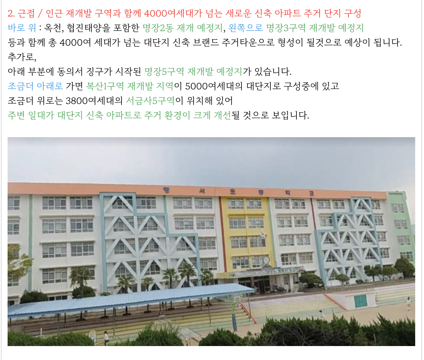동래구 명장2구역 재개발 예정지의 입지적 특징을 정리해 드립니다.