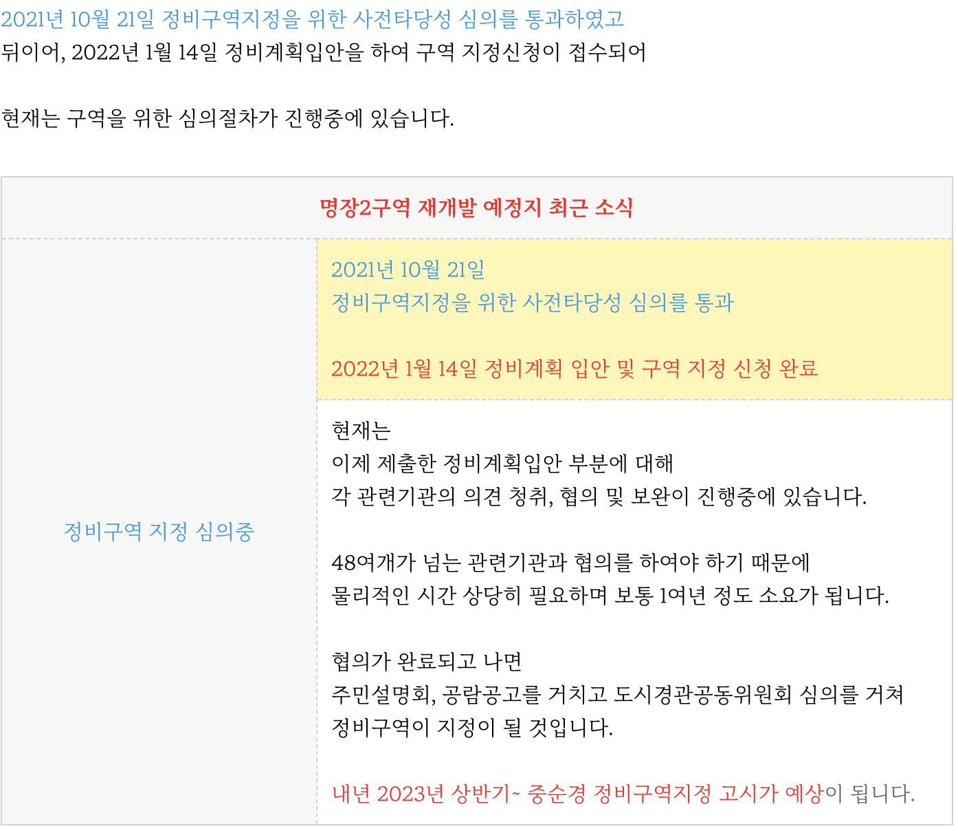 동래구 명장2구역 재개발 예정지의 기진행상황과 향후 예상 일정등 추가 정보는 아래 페이지를 참고부탁드립니다.