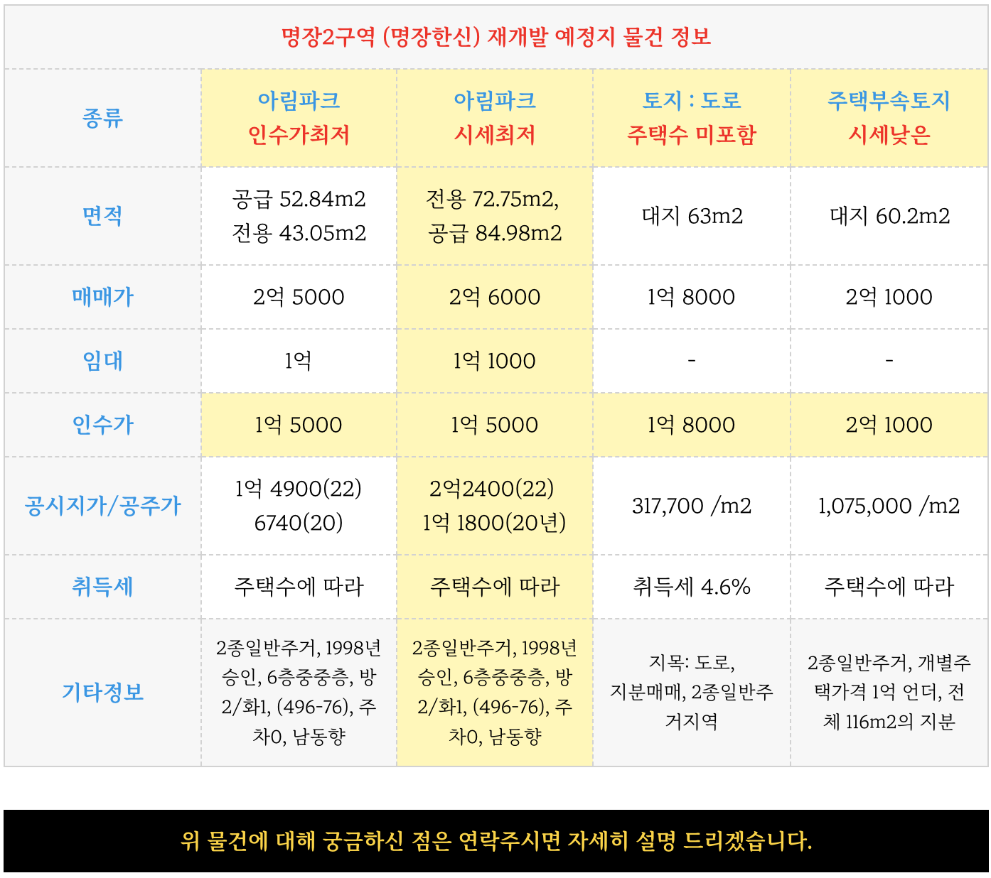 동래구 명장2구역 (명장한신) 재개발 예정지의 물건 정보부터 업데이트 해 드리겠습니다.