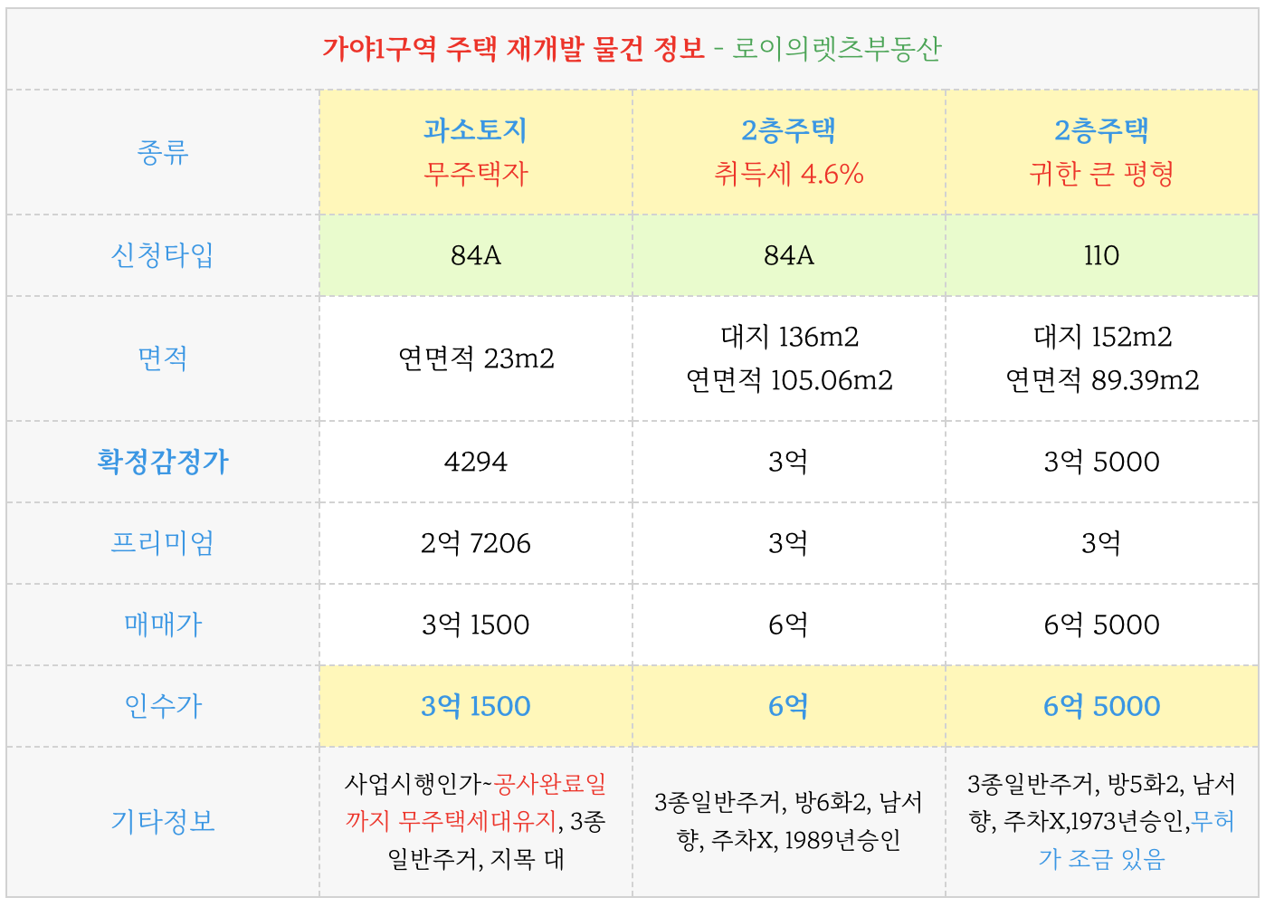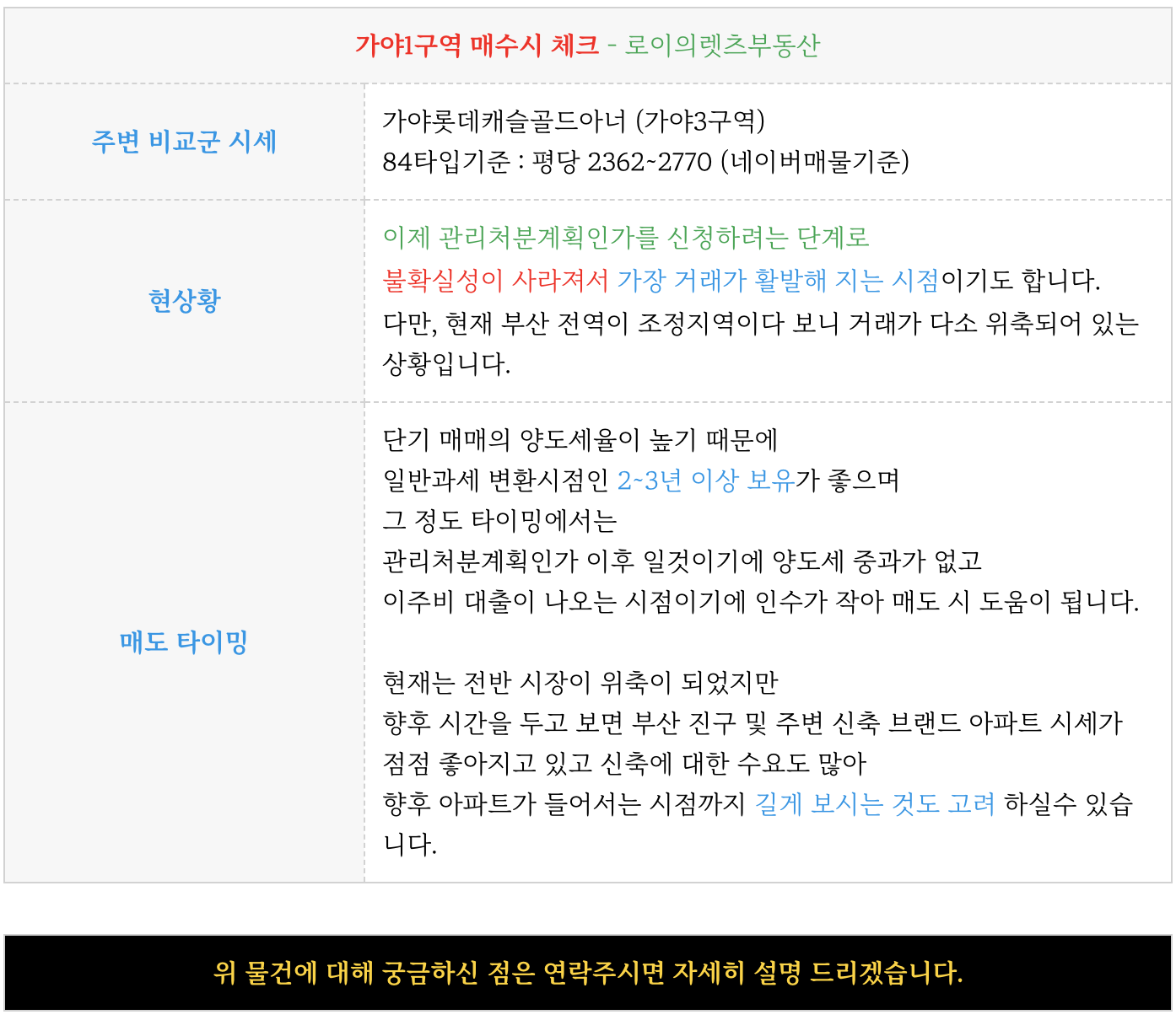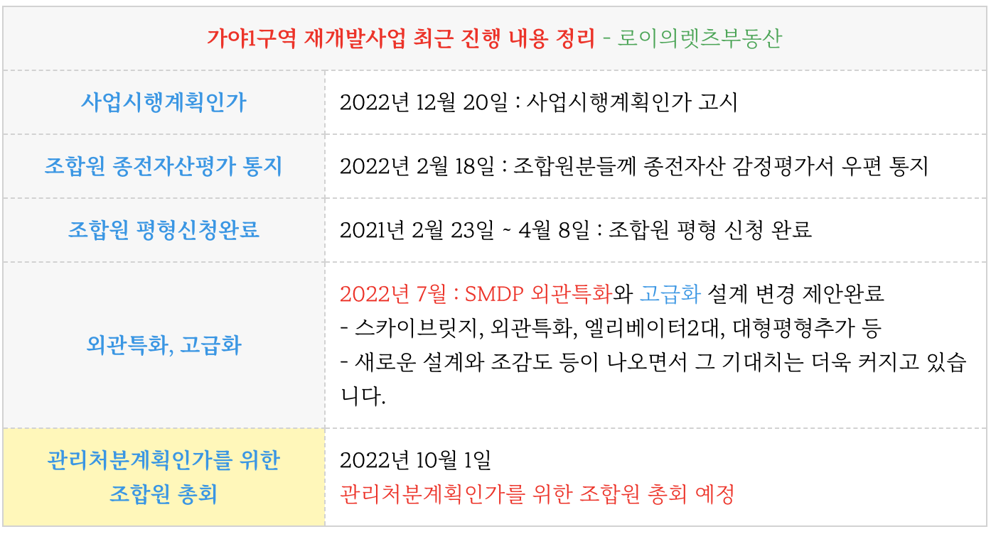 가야1구역 재개발 관리처분계획인가를 위한 총회소식과 110 타입 등 괜찮은 매물을 소개해 드리겠습니다.