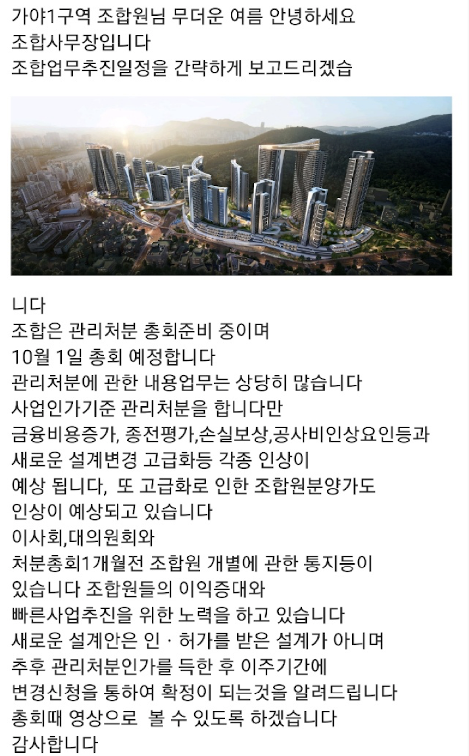 가야1구역 재개발은 이제 관리처분계획인가 신청을 앞두고 있습니다.