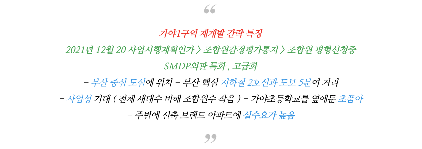 가야1구역 재개발 의 특징을 간략히 정리 해드립니다.