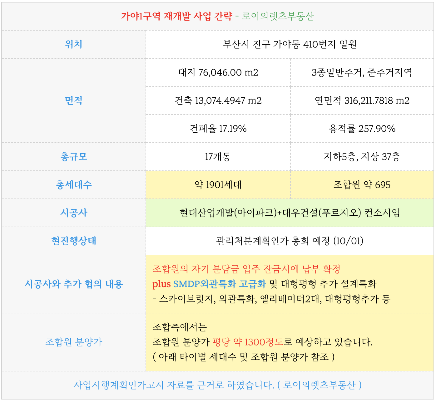 안녕하세요. 로이의렛츠부동산 ( 제이에이케이부동산중개법인 ) 입니다. 가야1구역 재개발 간략 특징 2021...