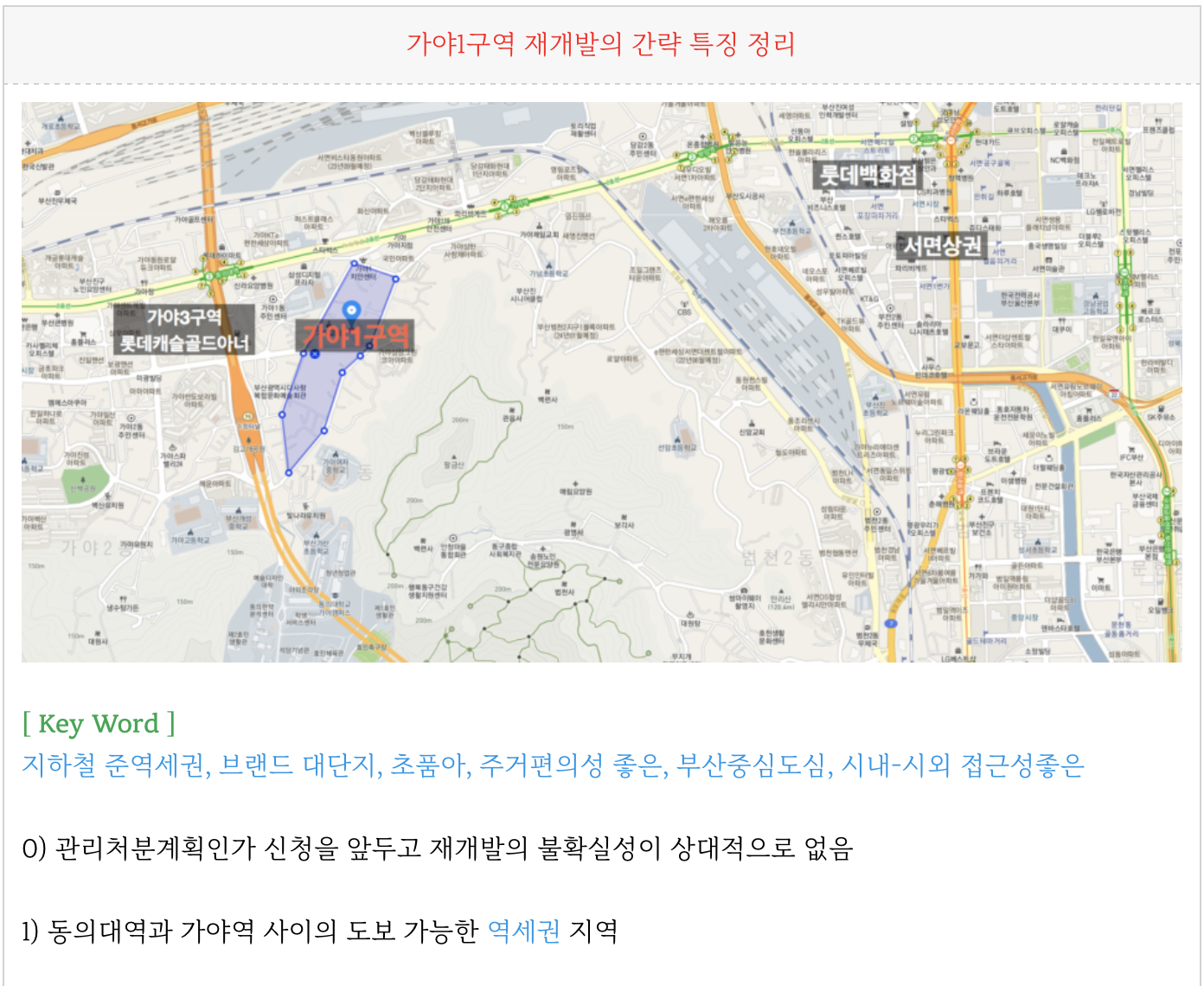 가야1구역 재개발의 진행상황정리 등 추가적인 정보는 아래 페이지를 참고 부탁드립니다.