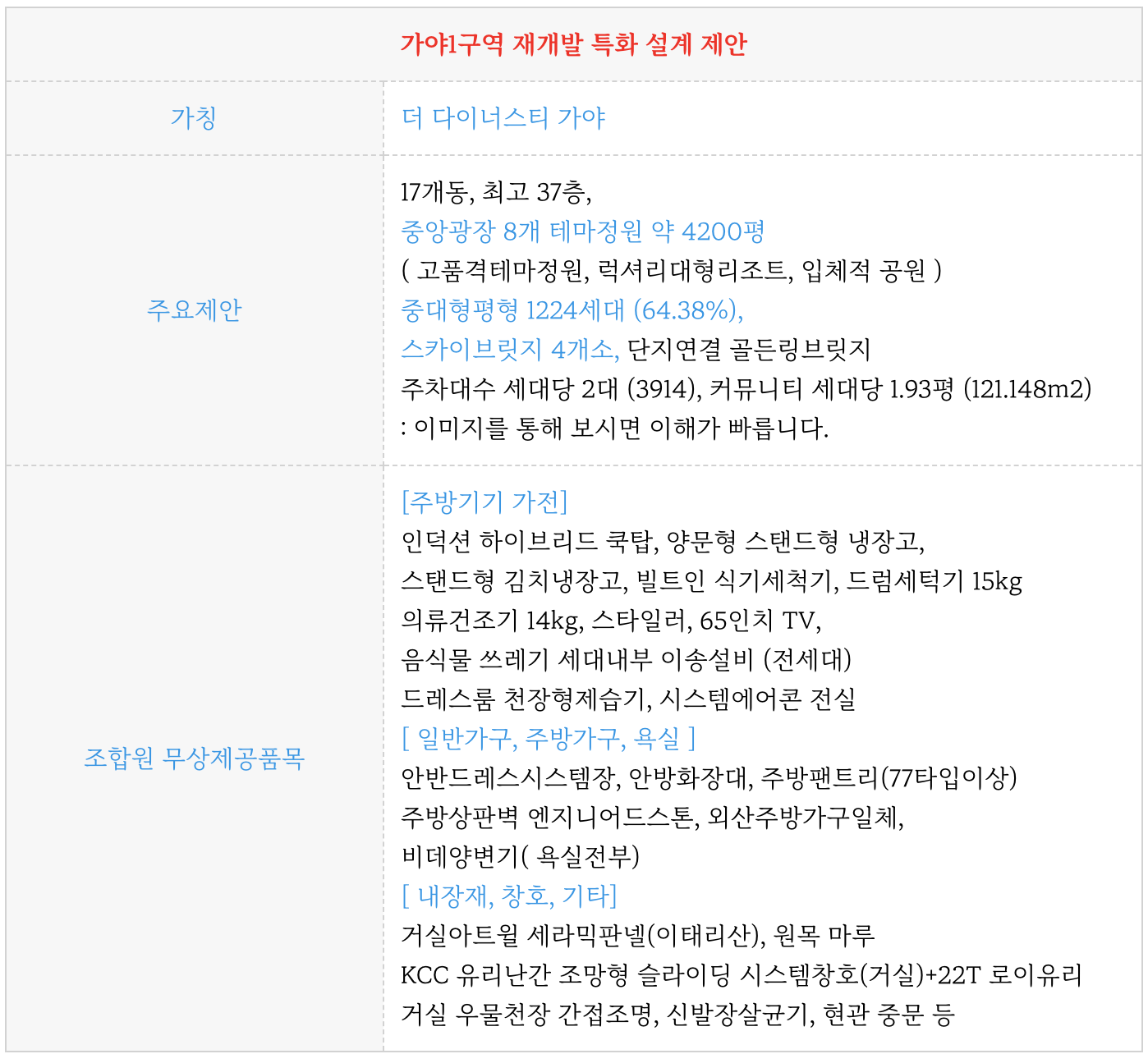 가야1구역 재개발 의 시공사 SMDP외관특화 고급화 등 간략한 내용 입니다.