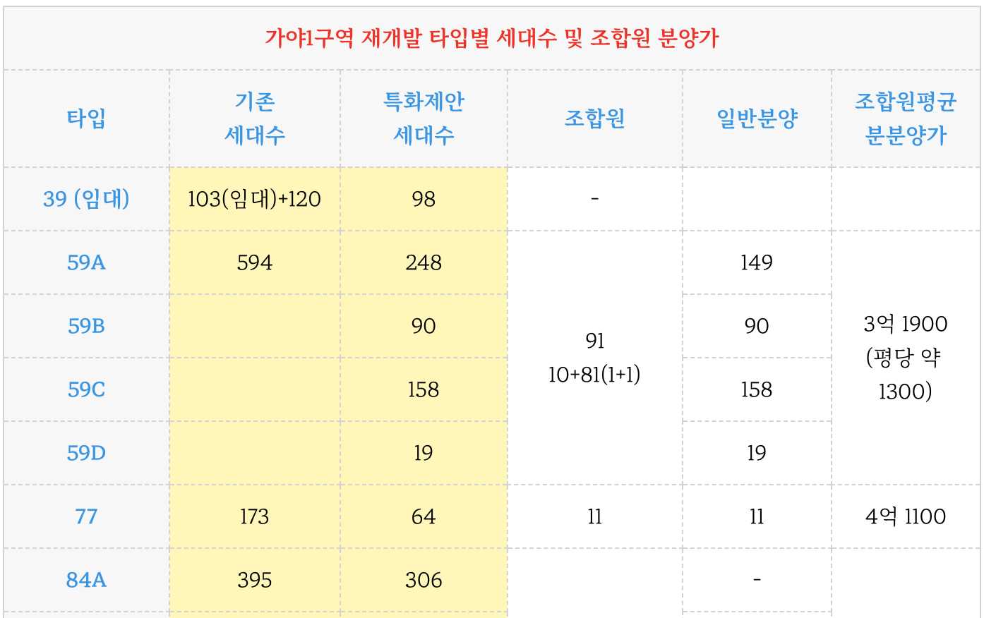 특화설계 " 가야1구역 재개발 : 관처총회일정 " & 시세낮은 110타입, 84 매물