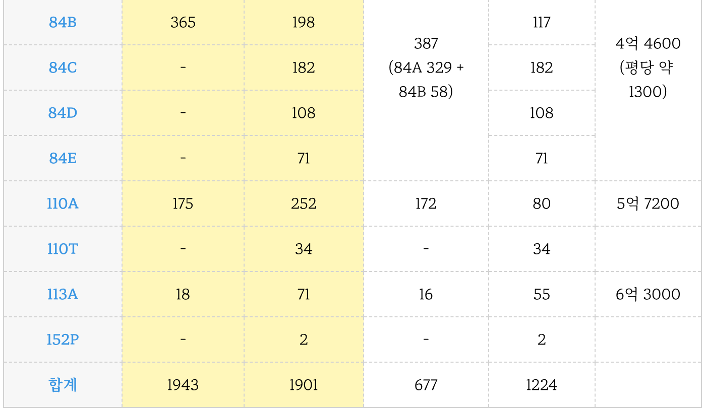 기본에서 대형평형이 일부 추가가 되며 세대수가 조금 감소하였습니다.