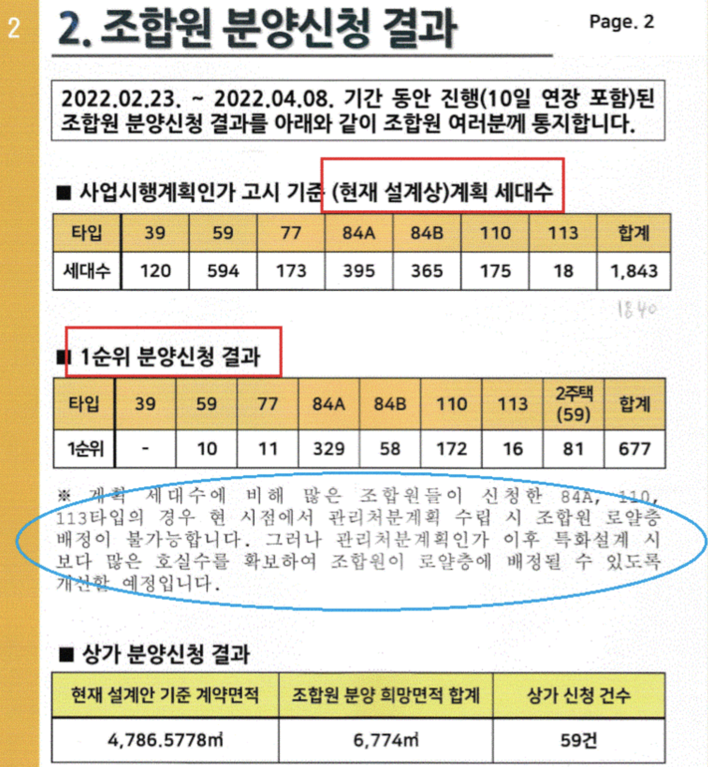 사업시행계획인가고시 > 조합원 평형신청 통지 > 조합원 분양 신청까지 완료 되었고