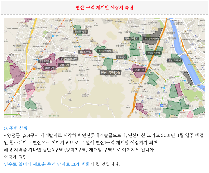 연산7구역 (구 연산1구역 ) 재개발 예정지 특징을 간략히 정리하였습니다.