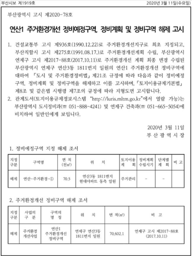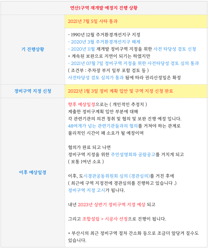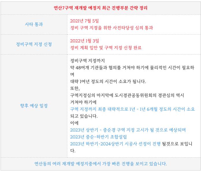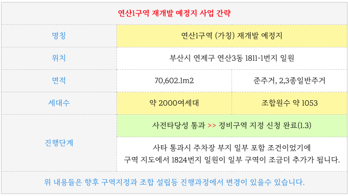 연산7구역 (구 연산1구역 ) 재개발 예정지 현 진행 상황에 대한 설명과