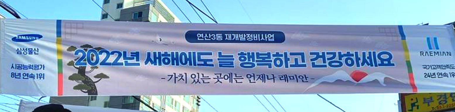 부산 최고의 선호도를 가진 삼성 래미안의 플랜카드 가 붙어서 더욱 기대감이 높아지고 있습니다