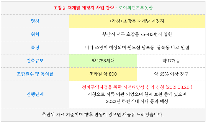 | 좌천범일통합2지구 재개발 가격조정 물건 소개 (0) | 2022.09.03 |