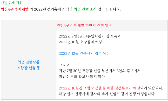 범천4구역 재개발 2022년 하반기 진행일정 (조합장 결선투표등) 과 소액 물건을을 소개해 드리겠습니다.