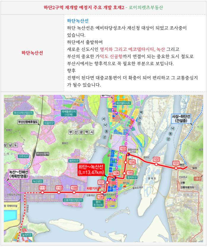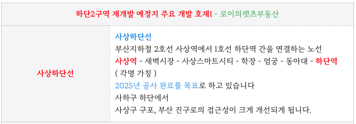 도시철도 개발 호재로 사상하단선과 하단녹산선이 있습니다.