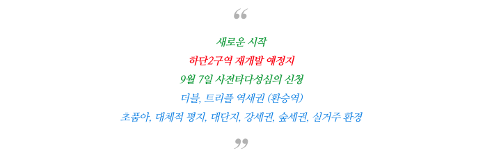 하단2구역 재개발의 주요 개발 호재들을 정리 드립니다.