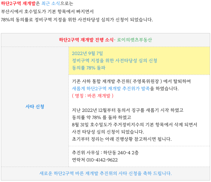 하단2구역 재개발 예정지 최근 사타 신청 소식과 현 가능 인수가 작은 물건 정보를 소개하여 드리겠습니다.