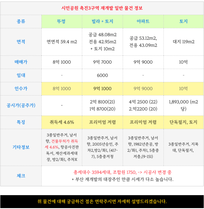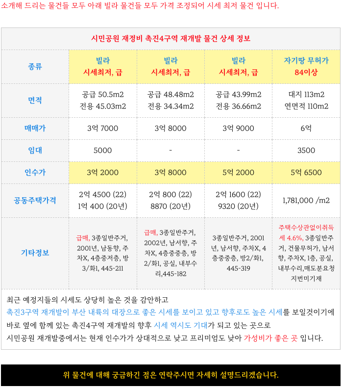 시민공원 촉진4구역 재개발 최저 매물 정리하여 소개해 드립니다.