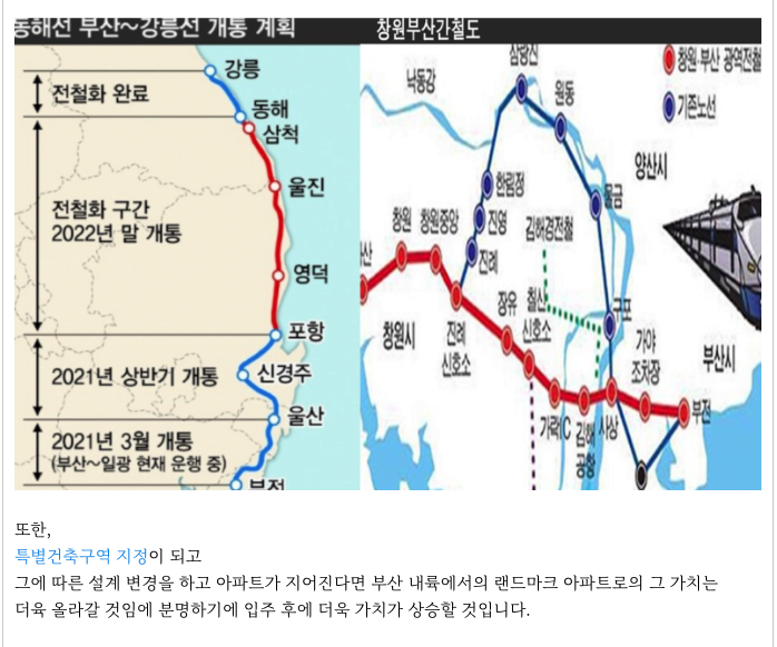 부전역 복합환승센터, 사상~해운대 대심도 등의 개발 호재가 함께 있습니다.