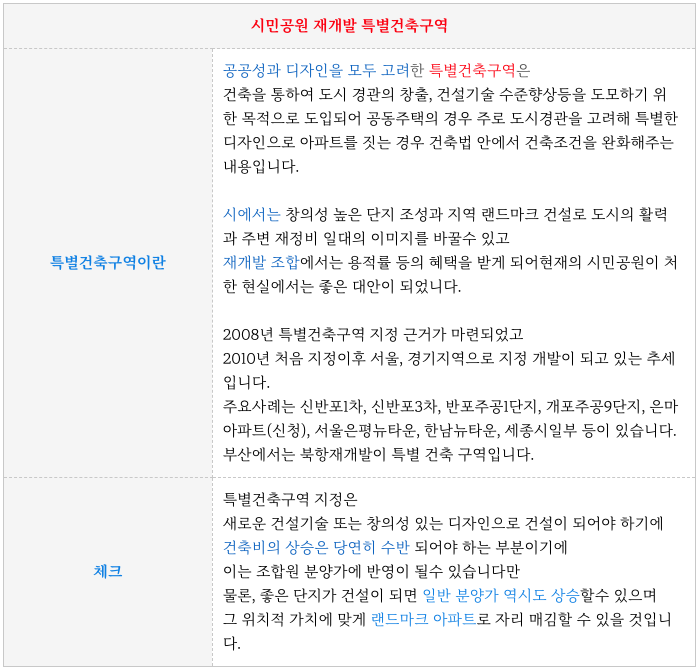 시민공원 촉진4구역을 포함한 시민공원 주변 재개발의 특징 을 다시 한번 간략히 정리해 드립니다.