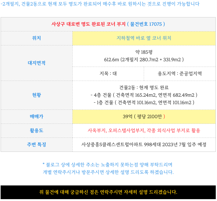 오늘 여러 활용도가 높은 물건 정보 부터 소개해 드리고 주변 상황도 같이 소개해 드리겠습니다.
