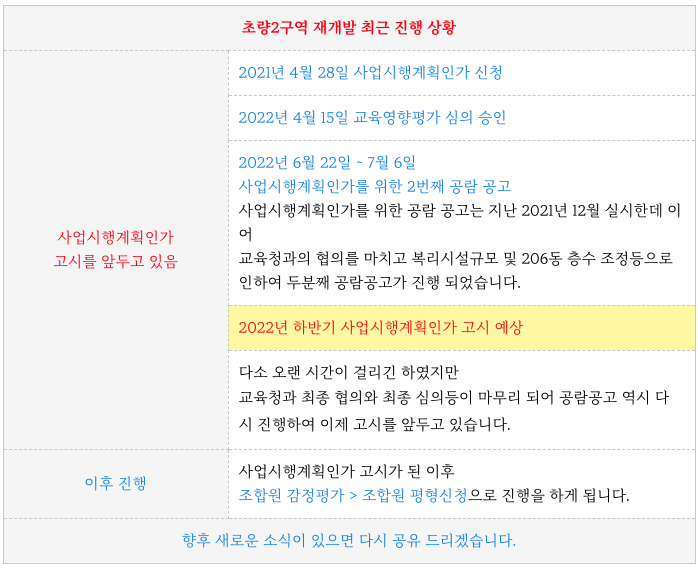 최근 사업시행계획인가 고시를 위한 2번째 공람공고까지가 완료가 되어