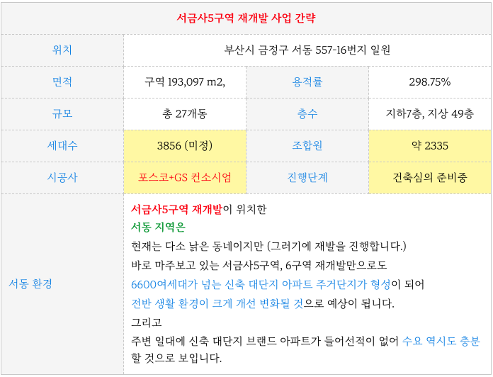 서금사5구역 재개발에 관심이 있으신 분들은 연락주시면 자세히 설명드리겠습니다.