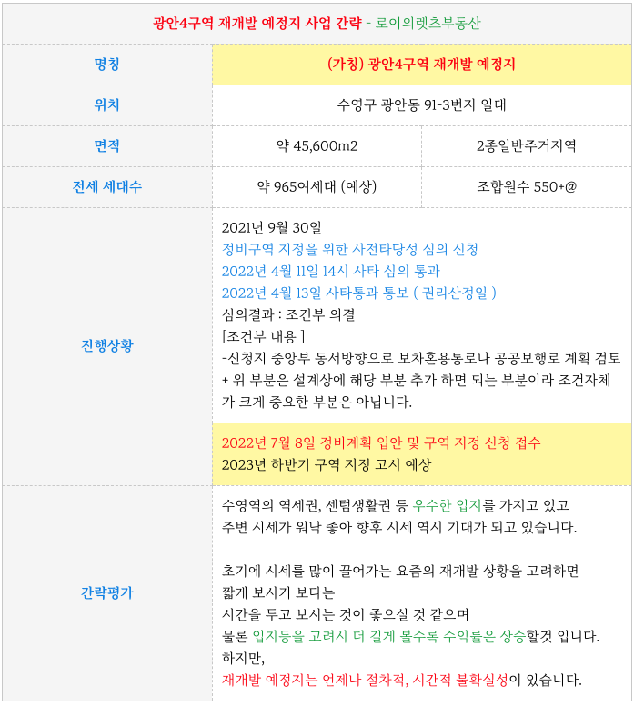 광안4구역 재개발 예정지의 특징 다시 정리등 추가 정보는 아래 페이지를 참고 부탁드립니다.