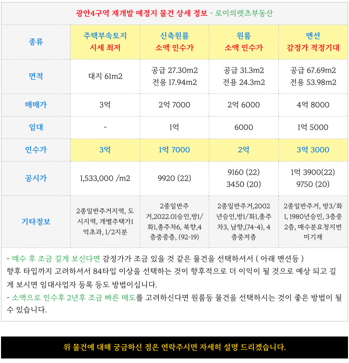 광안4구역 재개발 예정지 시세 최저 물건 정리하여 소개해 드리겠습니다.