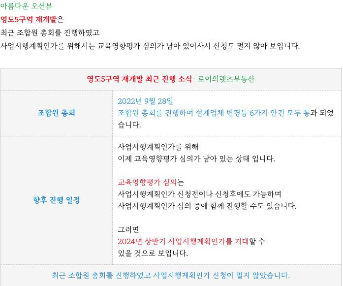 영도5구역 재개발의 진행상황과 향후 예상일정과 특징 재정리등 추가 정보는 아래 페이지를 참고 부탁드립니다.