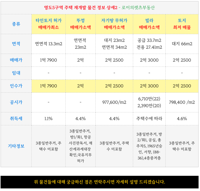 영도5구역 재개발 시세 최저 소액의 좋은 물건 소개 해드리겠습니다.