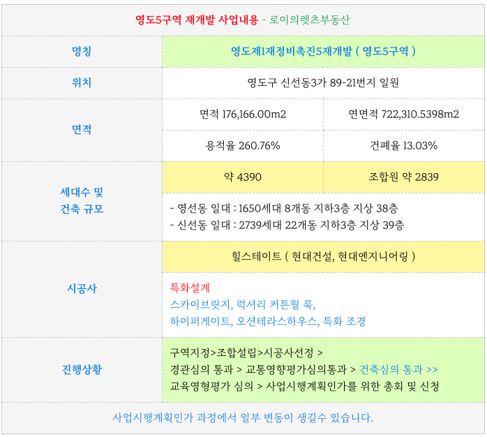 안녕하세요. 로이의렛츠부동산 ( 제이에이케이부산부동산중개법인 ) 입니다. 오늘은 영도5구역 재개발 최근...