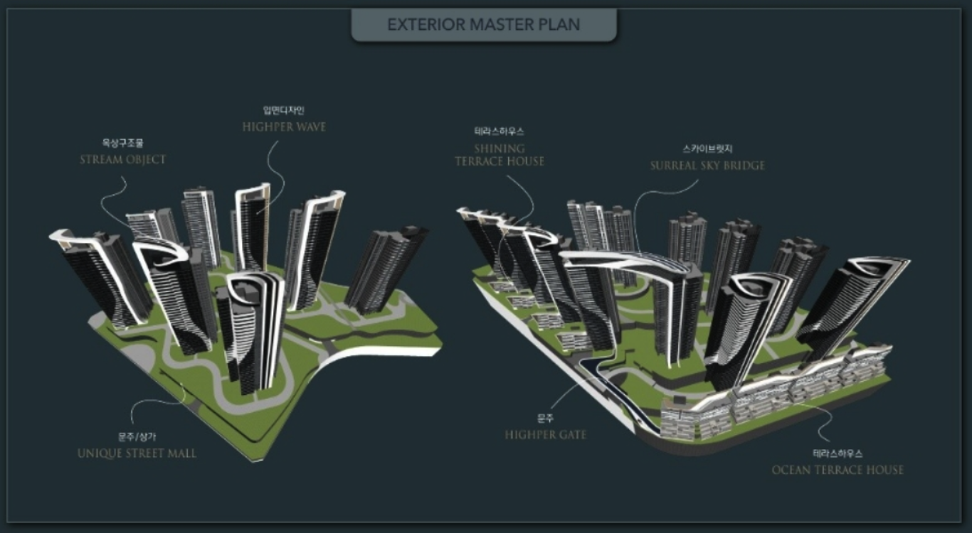 - 스카이브릿지, 럭셔리 커튼월 룩, 하이퍼게이트, 오션테라스하우스, 특화 조경 등