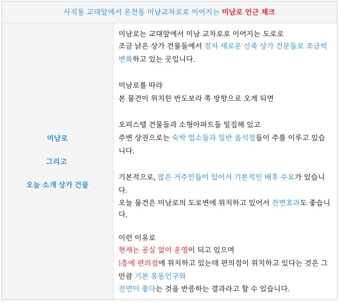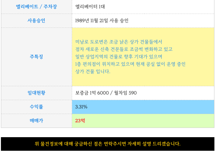 미남로 도로변 편의점 있는 6층 상가 건물 빌딩 정보 정리하여 드립니다.