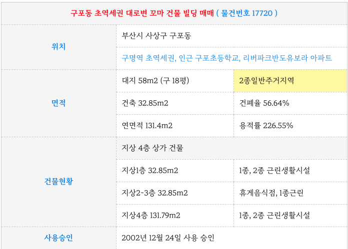 오늘 물건 구포동 백양대로변 역세권 꼬마 빌딩 건물 매매 물건 정보 정리 드리겠습니다.