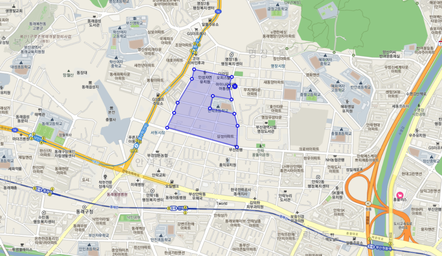 지하철 4호선 충렬사역과 명장역의 역세권 입니다.