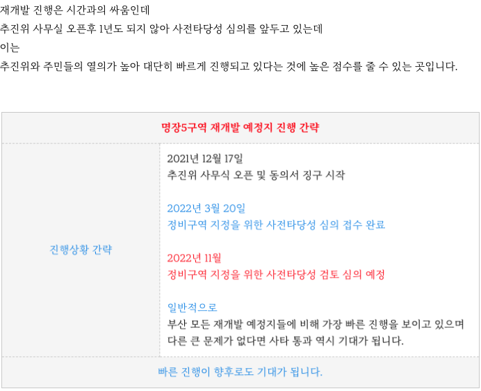 명장5구역 재개발 예정지 의 최근소식으로