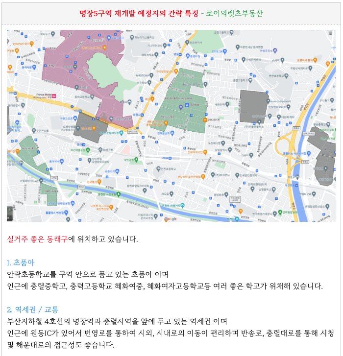 명장5구역 재개발 예정지의 간략한 특징을 정리하여 드립니다.