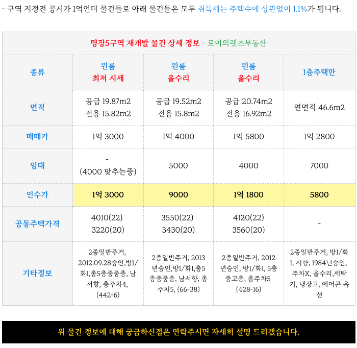 명장5구역 재개발 예정지의 소액 물건들 정보 정리 소개해 드립니다.