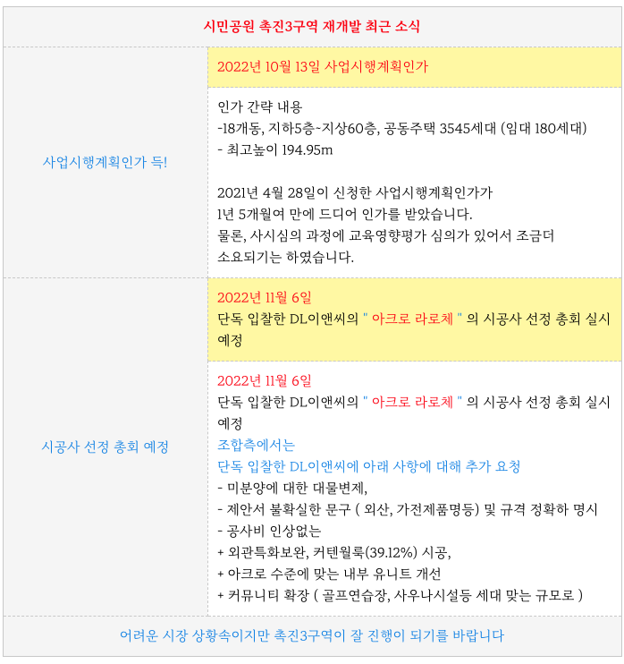 시민공원 촉진3구역 재개발 사업시행계획인가 소식과 시공사 선정 총회 소식 정리 드리고