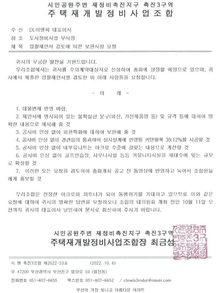 이는 건축비 상승으로 조합원에게 부담이 조금 늘수 있습니다만
