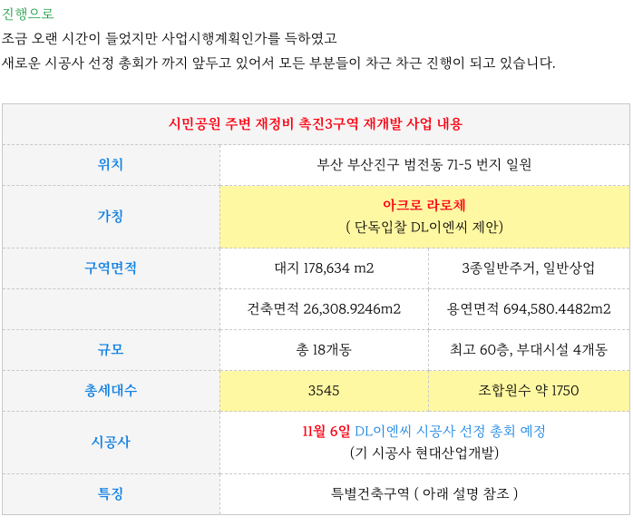 이제 11월 6일 새로운 시공사 선정총회를 앞두고 있습니다.