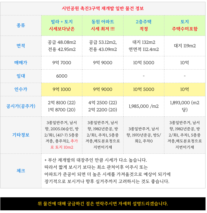 현재 가능 매물 역시 정리하여 소개해 드리겠습니다.