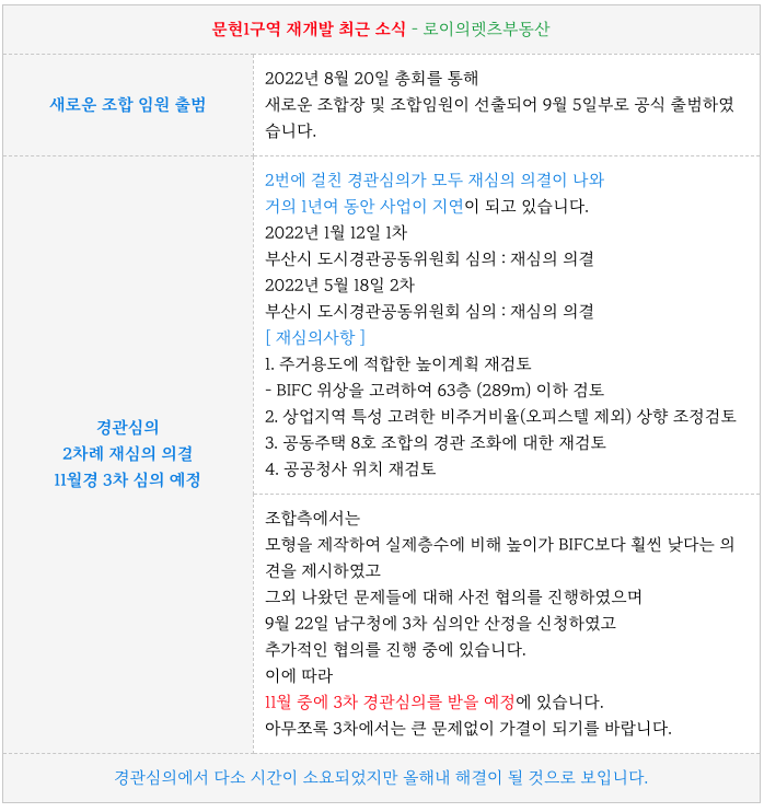 2022년 다소 어려움이 많았던 문현3구역의 진행 소식 으로는