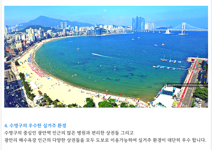 - 수영구 중심 광안동, 광안리 해수욕장, 주변시세 높은