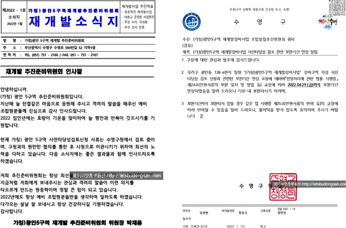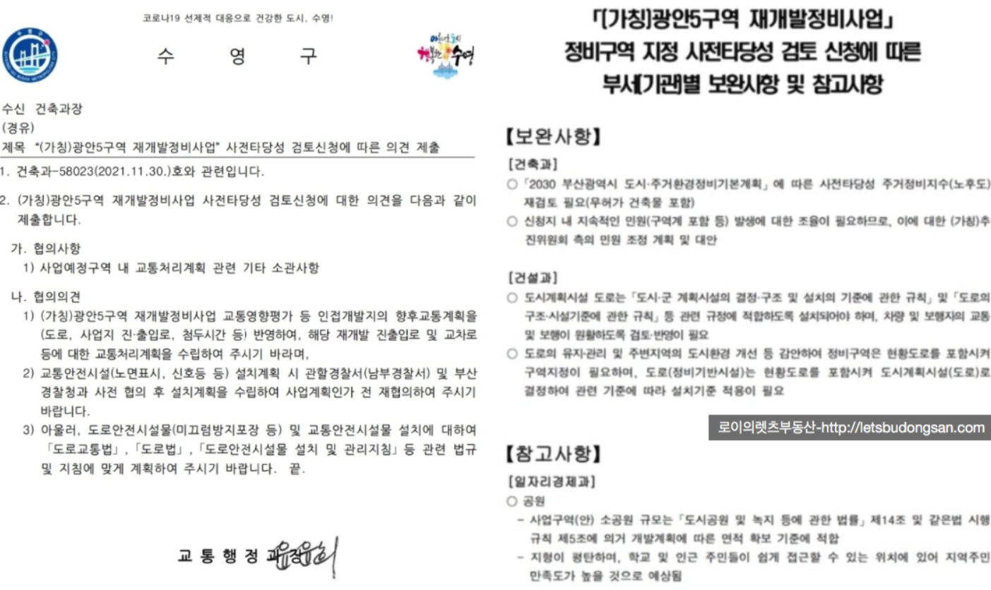 광안5구역 재개발의 현재까지의 초기 진행상황 정리 등 추가 정보는 아래 페이지를 참고 부탁드립니다.