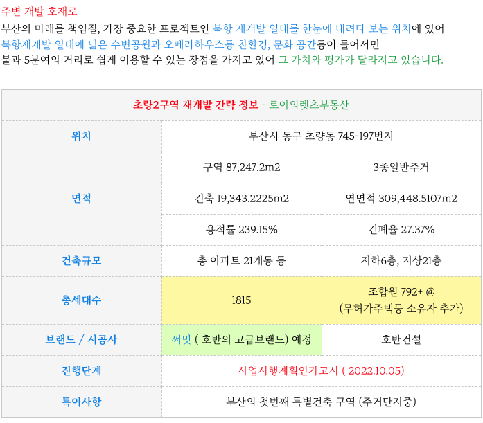 초량2구역 재개발의 특징을 간략히 다시 한번 정리하였습니다.