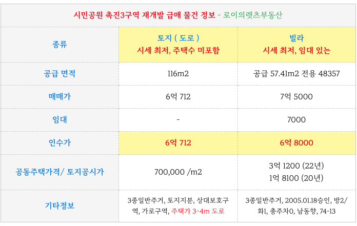 시민공원 촉진3구역 재개발 토지 / 빌라 급매 물건을 빠르게 소개해 드리겠습니다.