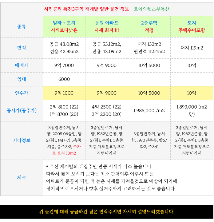 시민공원 촉진3구역 재개발 급매 등 물건 정보 소개해 드리겠습니다.