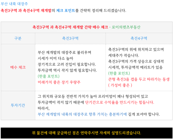 안녕하세요. 로이의렛츠부동산 ( 제이에이케이 부산 부동산중개법인 ) 입니다. 오늘은 부산 재개발 내륙 대...